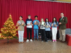 Während sie in der 1. Runde vor den 5. Klassen souverän aus ihren geübten Texten vorlasen, war die 2. Runde eine größere Herausforderung. Hier zeigte sich der Jury, wer flüssig liest, den Text sinnvoll betont und es schafft, den Inhalt mit der passenden Interpretation lesend darzustellen.