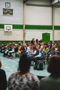 Moderiert wurde die Veranstaltung durch die engagierten Schülerinnen Medina, Lucy und Tuba des 9. Jahrganges. Nach Überreichung kleiner Schultüten durch die Paten-BuddYs ging es dann zum ersten Kennenlernen in die Klassenräume.