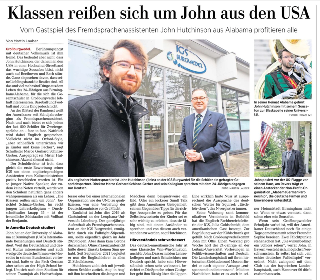 Ein Bericht der HAZ über unseren Fremdsprachenassistenten John Hutchison