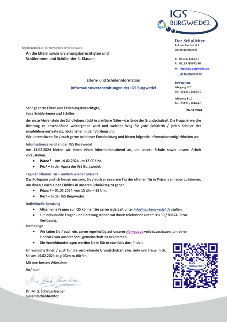 Quelle: Pixabay Präsentation Infoabend Jg. 4 vom 14.02.2024 Präsentation des Elternabends Hier gelangen Sie/ gelangt ihr zur aktuellen Präsentation unserer Schule. Einladung zum Info Abend IGSBurgwedel 14. Februar 2024 Allgemein Weiterlesen Vorheriger BeitragFlohmarkt des 8. Jahrgangs am Tag der offenen TürNächster BeitragPreisanpassung Mensaessen Das könnte dir auch gefallen Projekt Rettungsring 18. Juni 2024 Weihnachtspäckchenaktion – IGS Burgwedel nimmt teil 14. November 2021 Der 5. Jahrgang bei der Üstra 8. Dezember 2024