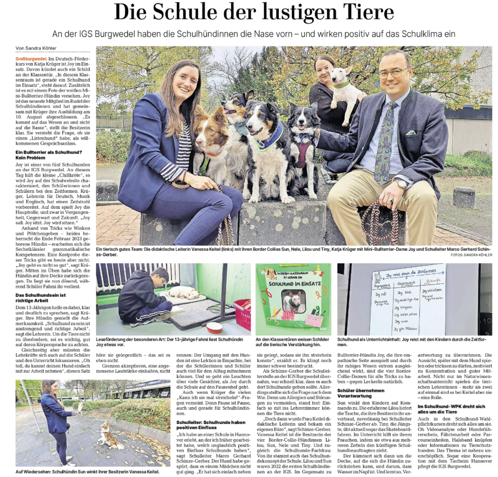 Die Schule der lustigen Tiere – HAZ berichtet über unsere Schulhunde HAZ - 05.11.24 IGSBurgwedel 5. November 2024 Allgemein Weiterlesen Vorheriger BeitragIGS Burgwedel hat ein Herz für UNICEF – Die 5 b unterwegs zum Sammeln von SpendenNächster BeitragAuszeichnung zur Umweltschule – Burgwedel Aktuell berichtet Das könnte dir auch gefallen Kinder pflanzen 1680 Sträucher – HAZ und Marktspiegel berichten 23. November 2022 Finale oho Finaaale ohoooo: Rossmann Robomania 3. Oktober 2023 Taking Back Monday begeistert auf dem Zehntfest in Kirchhorst 15. Juni 2025