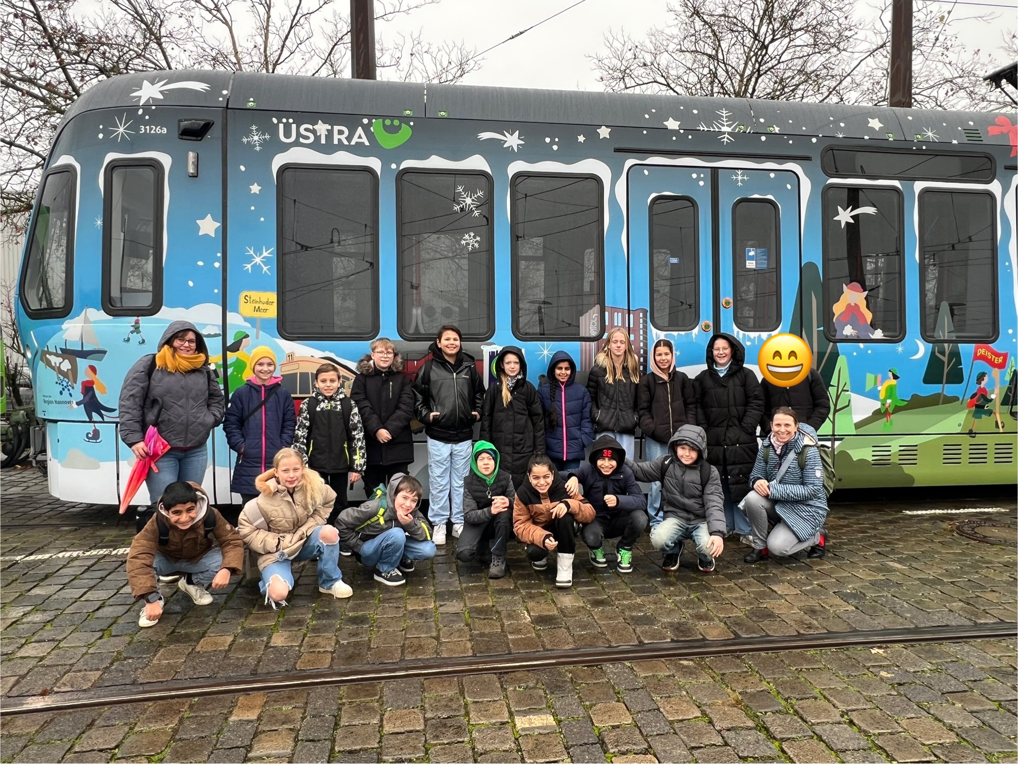 Es war wieder soweit, die 5. Klassen machten sich auf den Weg zur Zentrale der Üstra in Hannover-Döhren, um etwas über richtiges Verhalten in öffentlichen Verkehrsmitteln zu lernen und sich das Betriebsgelände durch eine Führung etwas genauer anzusehen.