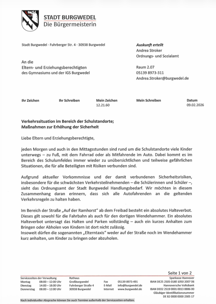 mit KI generiert Verkehrssituation im Bereich der SchulstandorteVerkehrssituation IGSBurgwedel 13. Februar 2026 Allgemein Weiterlesen Vorheriger BeitragVive l‘amitié franco-allemandeNächster BeitragComing Soon: Tag der offenen Tür am 06.03.26 Das könnte dir auch gefallen Weihnachtsbotschaft 2021 21. Dezember 2021 IGS Burgwedel erfolgreich beim Englischwettbewerb „The Big Challenge“ – HAZ berichtet 19. Juli 2022 Handballtunier Jahrgang 5 16. März 2024