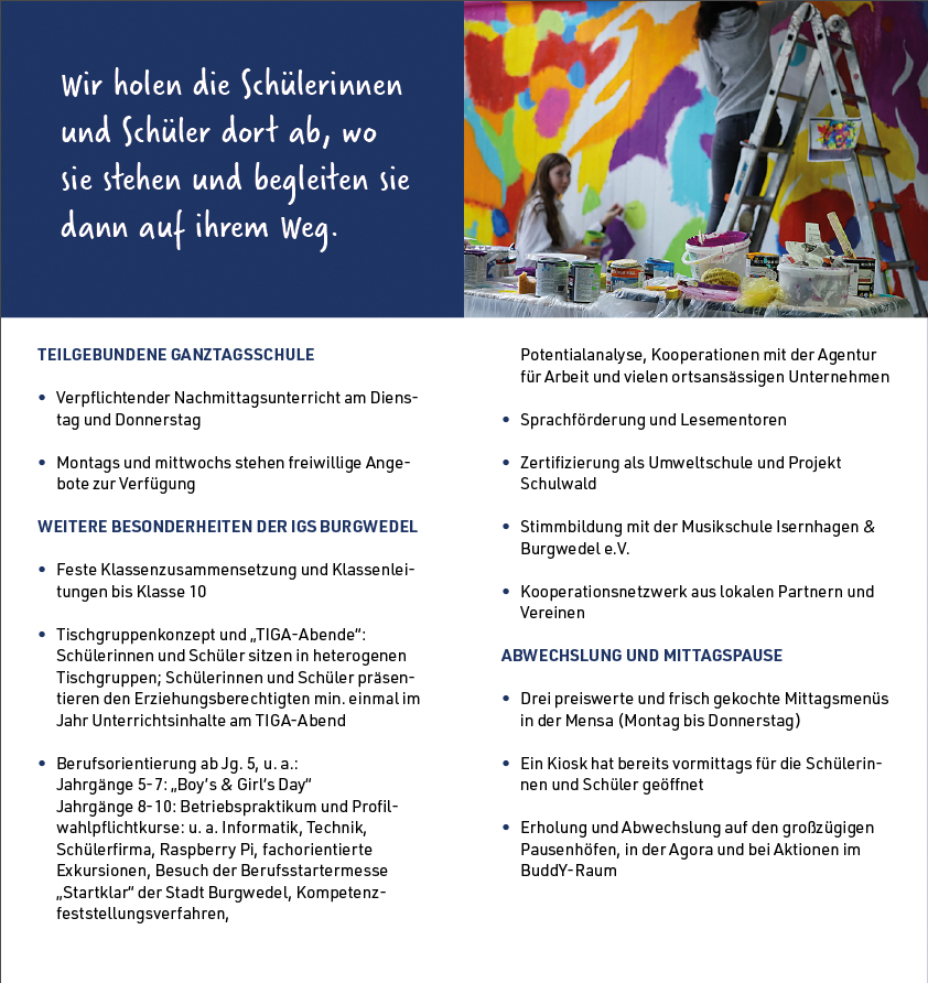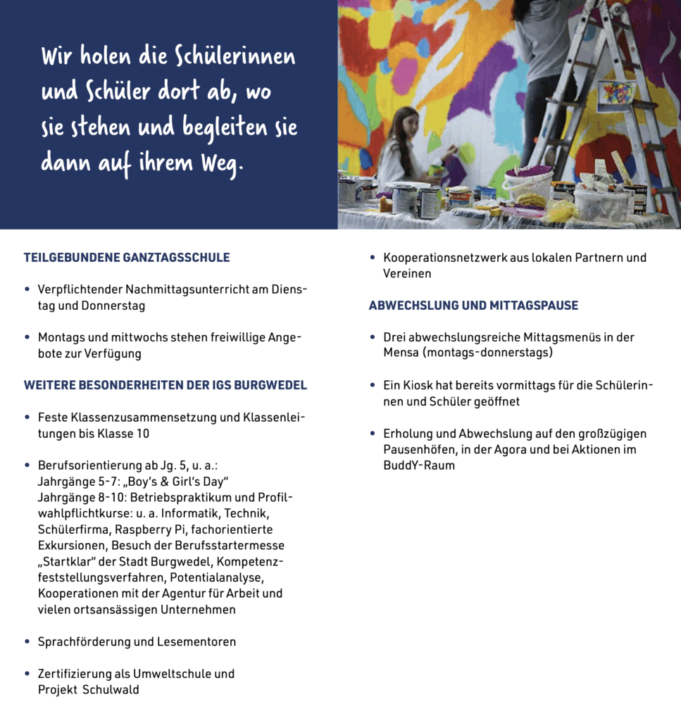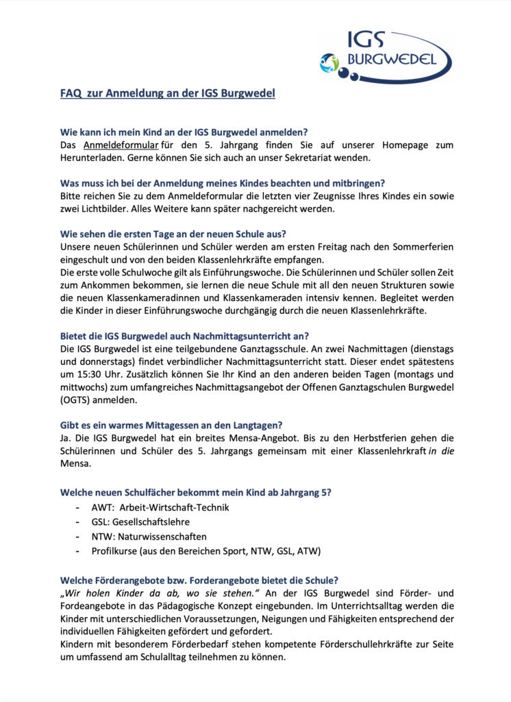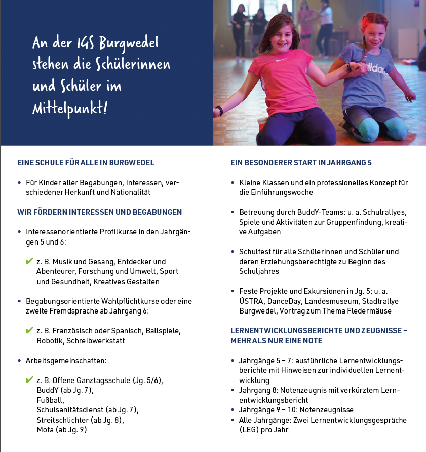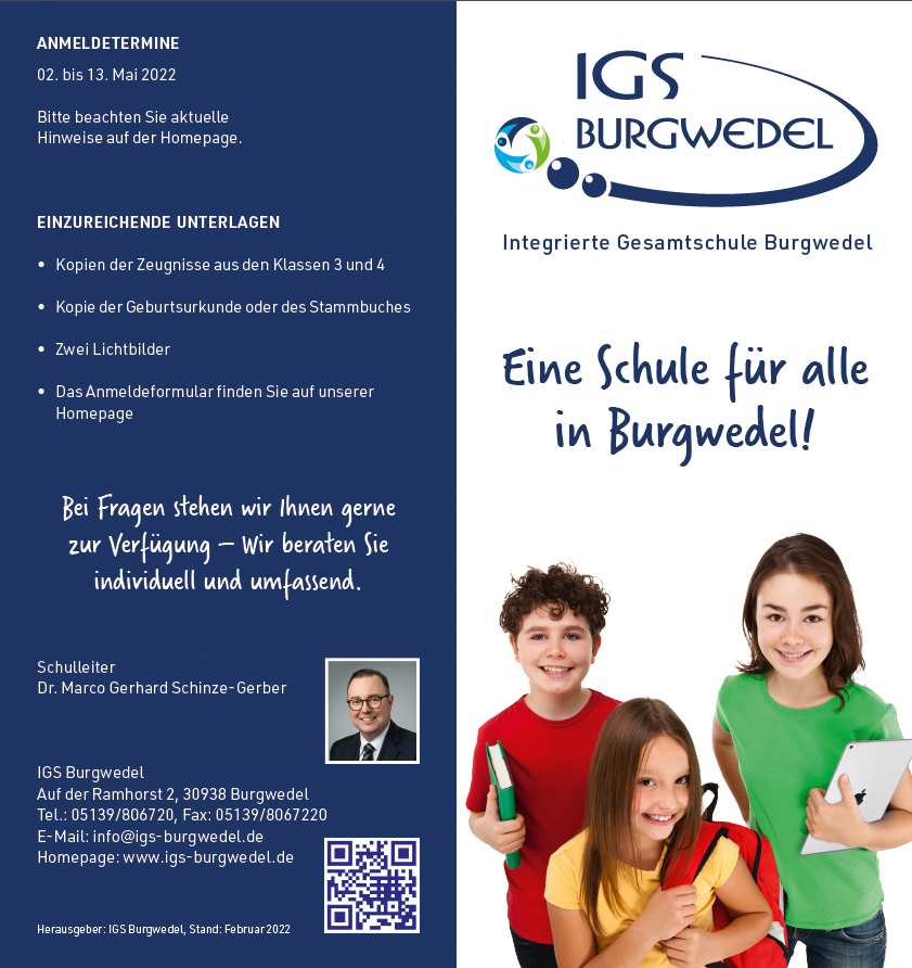 wir freuen uns sehr über Ihr / euer Interesse an der IGS Burgwedel sowie der Anmeldung für das kommende Schuljahr 2025/2026. Auf dieser Seite finden Sie / findet ihr alle nötigen Informationen und Unterlagen für die Anmeldung.