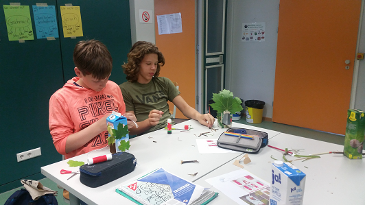 Im Juni 2019 haben die Schülerinnen und Schüler des WPKs „Umweltschutz – Müllverwertung“ (Jg. 6) aus Getränkekartons Portemonnaies und Futterhäuschen für Vögel hergestellt.