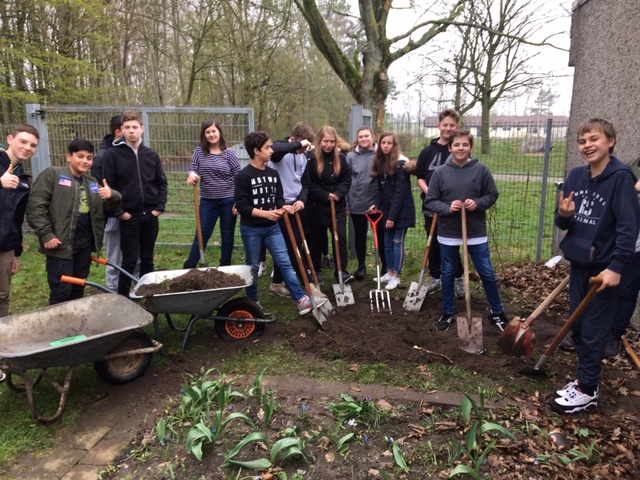 Mit viel Körpereinsatz legte der Profilkurs „Forschung und Umwelt“ JG 6 über mehrere Wochen einen Schulgartenteich an. Es war richtig harte Arbeit, ein Loch in den verdichteten Boden zu bekommen. Große Unterstützung gab es später auch noch von den Klassen 5a und 6a.