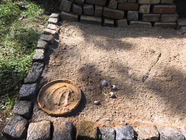 Bau einer Trockenmauer, Schaffung einer Sand/Lehmfläche, erster Einzug von Wildbienen in die Nisthilfe und Entdeckung des ersten Frosches im Teich