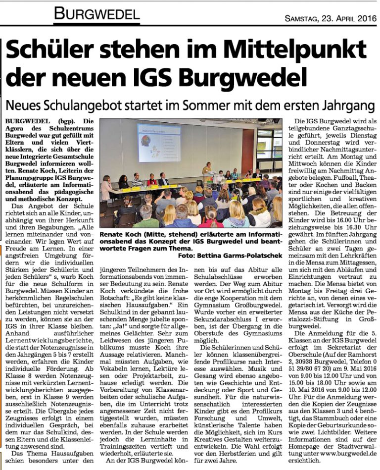 Schüler stehen im Mittelpunkt der neuen IGS Burgwedel