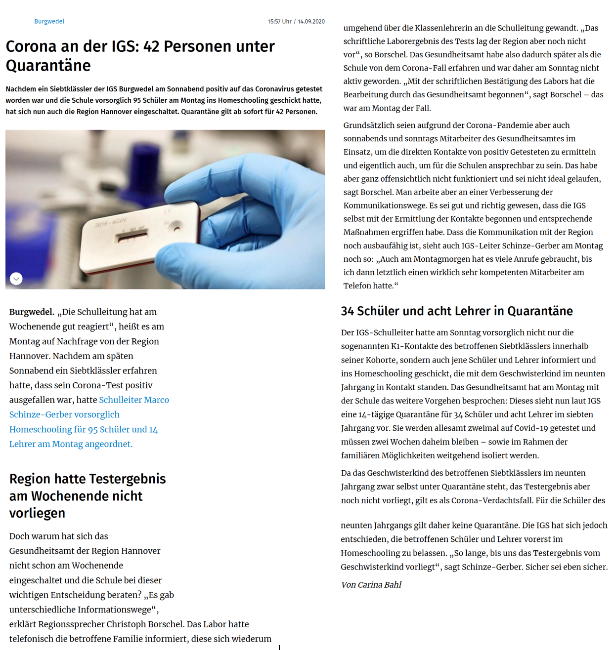 Hannoversche Allgemeine Zeitung, 18.11.2020