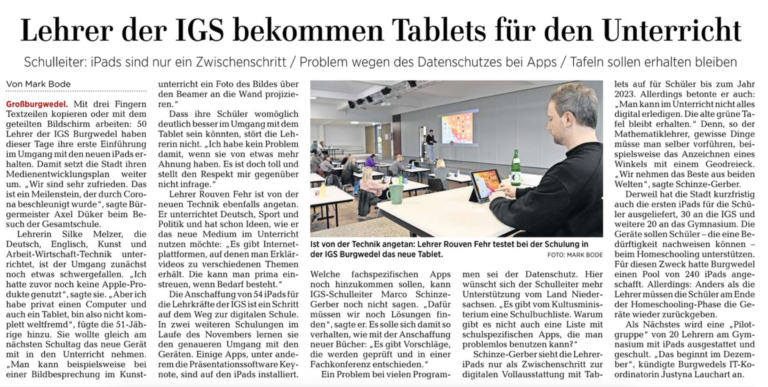 "Presse: Lehrer der IGS bekommen Tablets für den Unterricht"