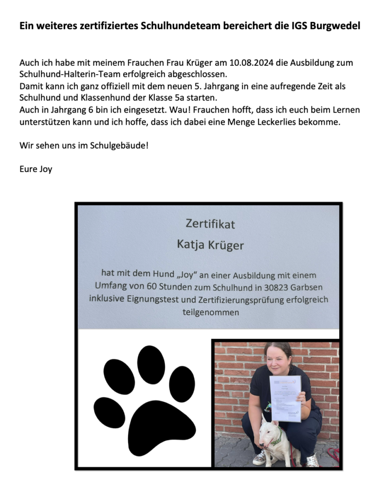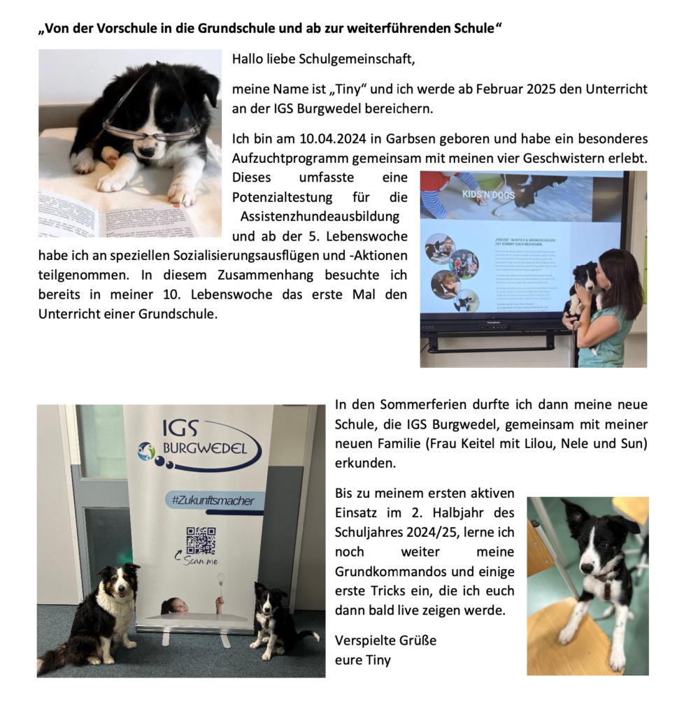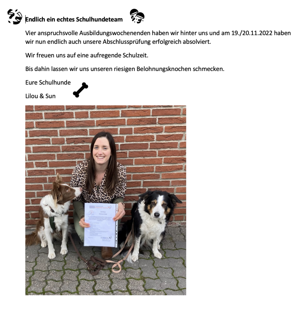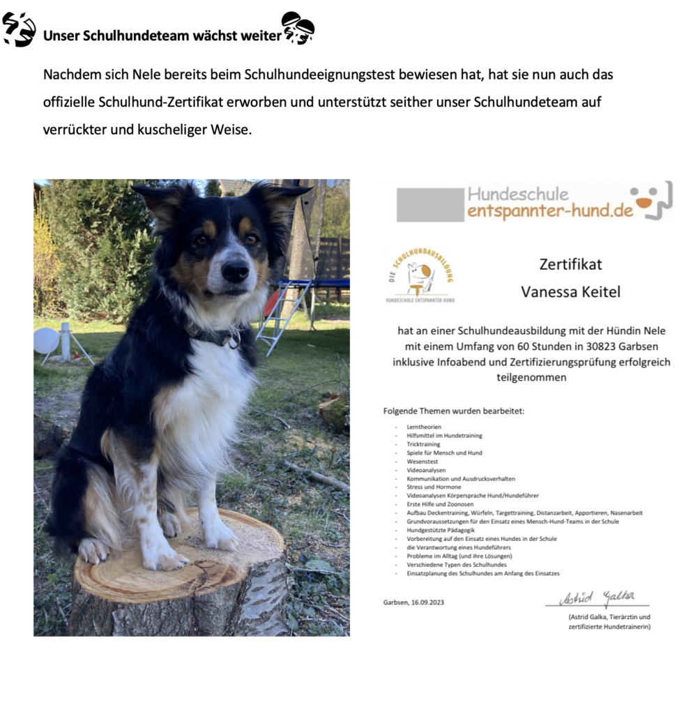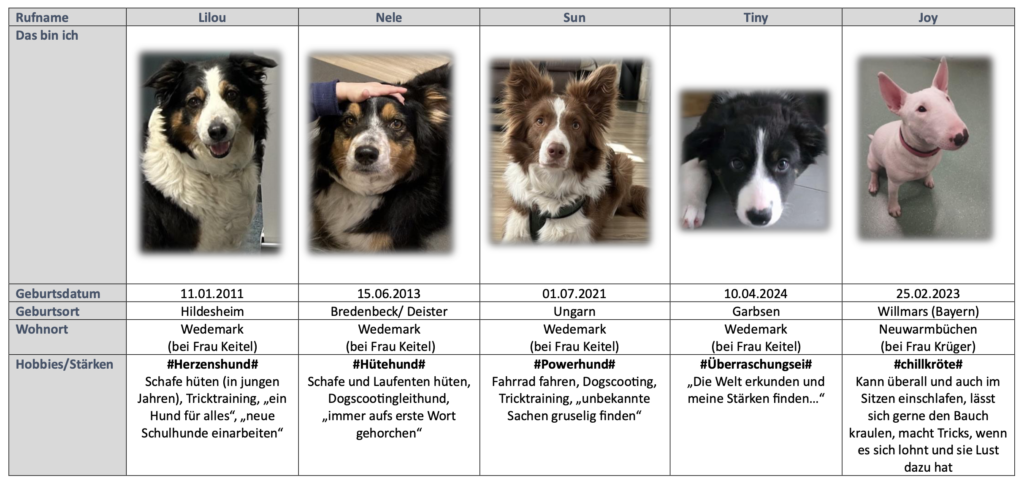 Wir freuen uns, dass mittlerweile vier ausgebildete Schulhunde Teil unserer Schulgemeinschaft sind. Auf dieser Seite erfahren Sie/ erfahrt ihr alles über Lilou, Nele, Sun, Joy und unsere Nachwuchshunde und warum Schulhunde wichtige Bestandteile unserer Schule sind.