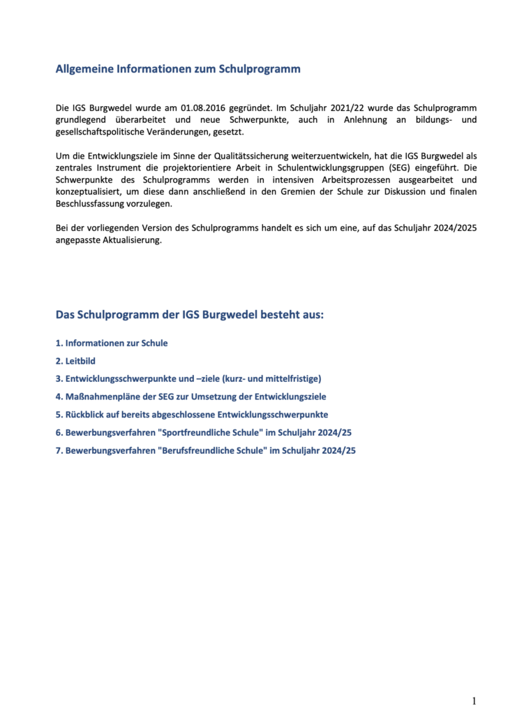 Hier finden Sie das aktuelle Schulprogramm der IGS Burgwedel. Das Programm steht zum Download bereit.